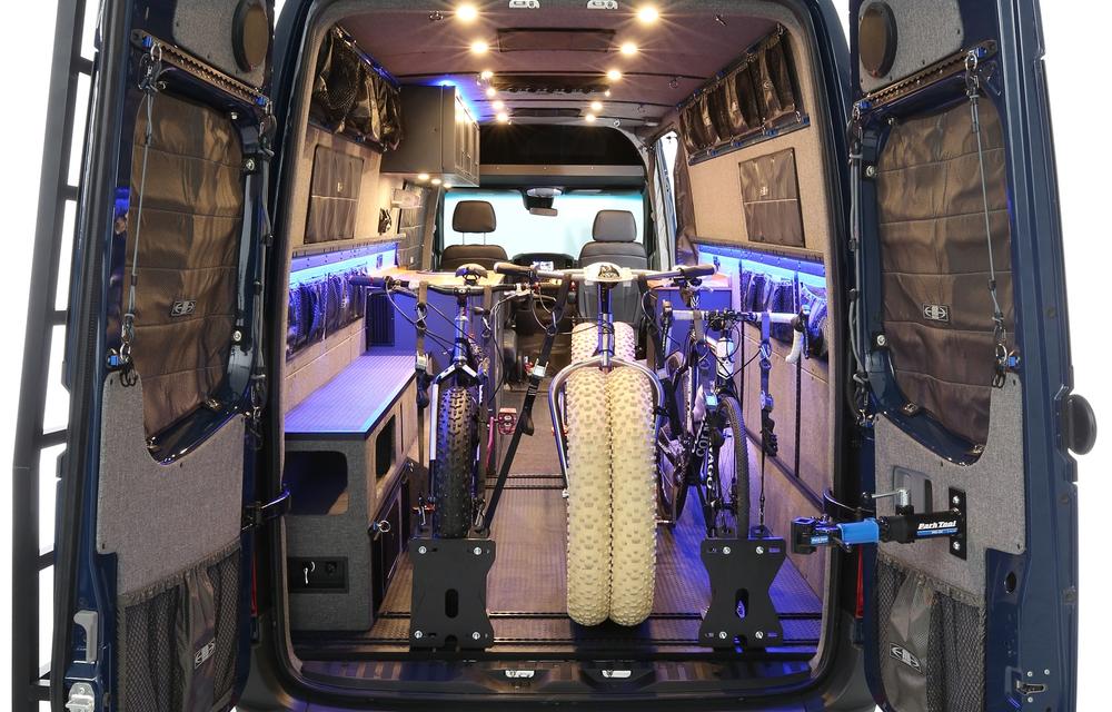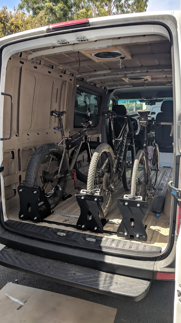 RB Components Bicycle Wheel Chock easily keeps your bike in place by cradling the tire in the chock. The Bicycle Wheel Chock can adjust to fit different width tires from 1" to 5-1/2" (road - fat tire) tires. Bikes can then be secured to the chock with a simple twist tie or std. tie-downs. Chock is secured to two sticks of L-Track giving you endless mounting locations.