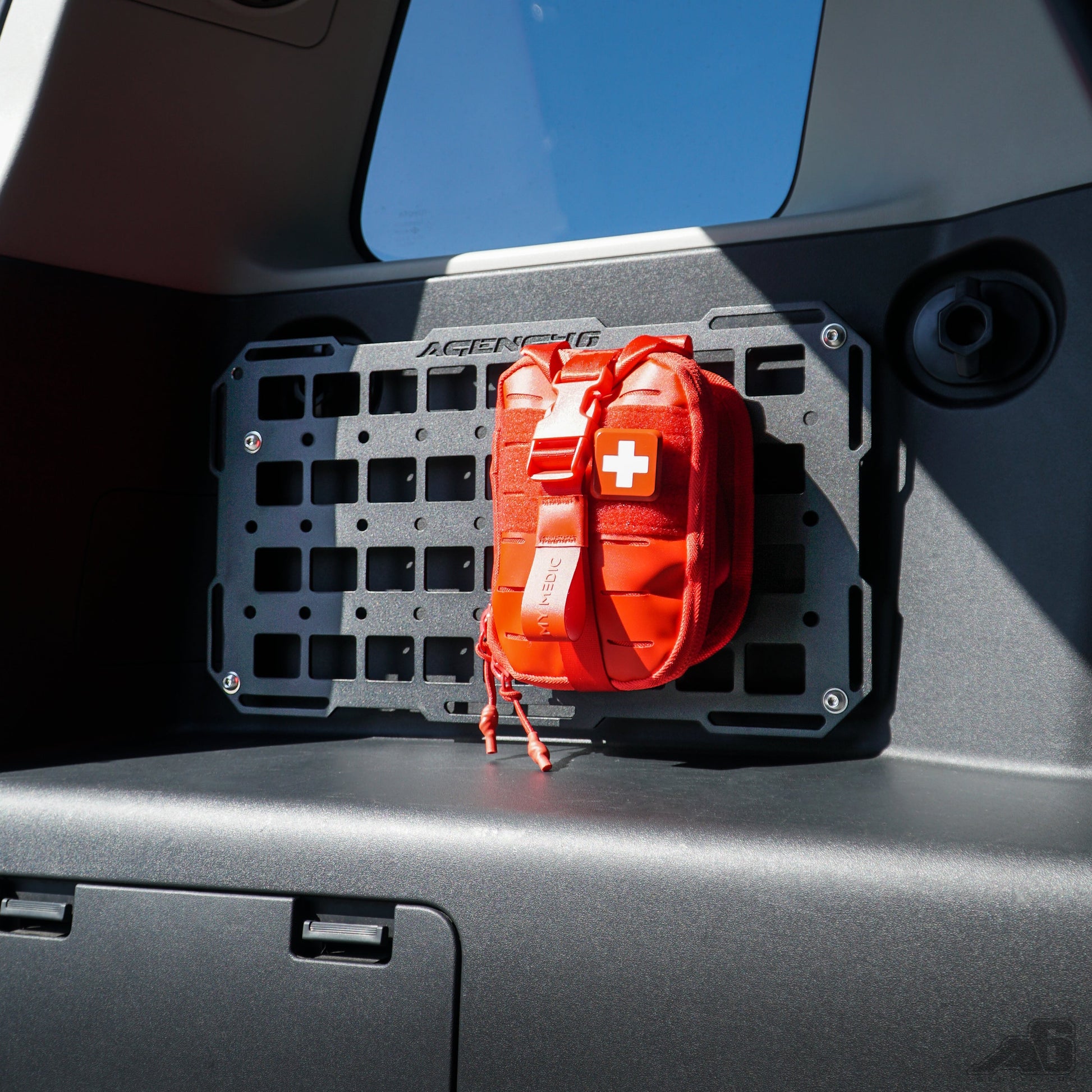 Tired of everything rolling around back there? Want to keep important equipment at the ready? Add organization to your vehicle with the Agency 6 GRIDS panel. This storage solution gives you vertical real estate for mounting a variety of accessories. MOLLE pattern cutouts allow for a range of camping and off-road components to be securely strapped directly to the panels. Slots on the perimeter are ideal for mounting lights, or as additional strap points. Panel includes stainless steel mounting hardware and machined aluminum stand-offs.