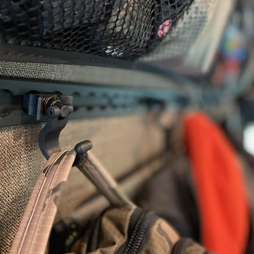 Experience the reliability of our sturdy L-track hook, reinforced with nylon for enhanced durability. This robust hook effortlessly mounts within your L-track system, simplifying the storage of various items with a weight capacity of up to 40 lbs. Ideal for hanging hats, mugs, key chains, and virtually any item you can imagine, our hooks have been a proven seller for years, with thousands of sets sold to satisfied customers.
