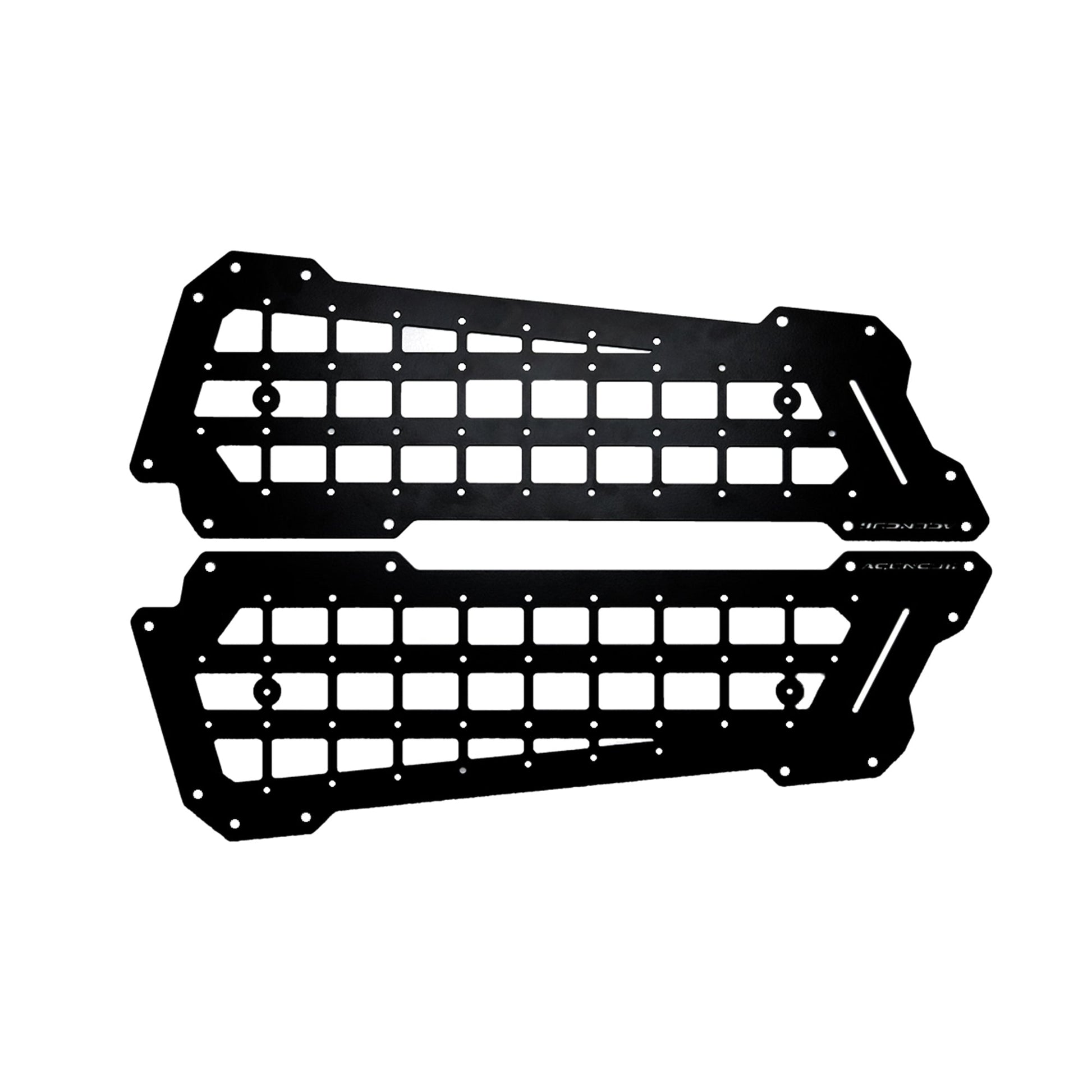 Have commonly needed items at the ready! This innovative mounting solution for your Jeep attaches directly to the stock front fenders via included nutserts and hardware. MOLLE pattern cutouts allow for a wide variety of camping and off-road accessories to be securely strapped directly to the panels. Use included cinch straps to hold recovery straps or other items directly to the panels. Important items can be easily accessed by externally mounting them. Laser-cut aluminum panels are strong, lightweight and feature a durable black powdercoat finish.