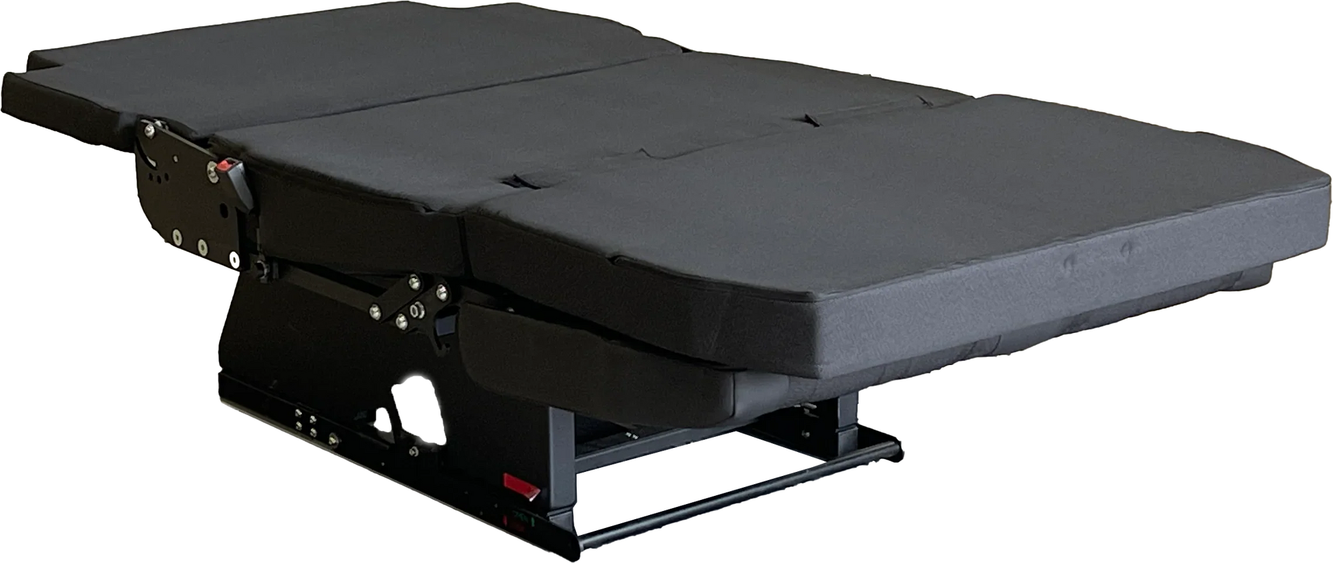 Seatbeds are versatile, comfortable, easy to use, and most importantly, they are safe. Subjected to intensive testing and pass all safety certifications in North America including FMVSS/CMVSS 207/210, all the while providing a comfortable seat for traveling and upon arrival, an equally comfortable bed. A SafeTrack Seatbed Bracket (sold separately) can allow for mounting of a seatbed into any vehicle with the vertical clearance and enough surface area. On the other hand, when Seatbeds are paired with SafeTrack Flooring Systems (sold separately) for vans, these Seatbeds become even more versatile and can glide from one end of the van to the other with ease. , this mounting plate is required.