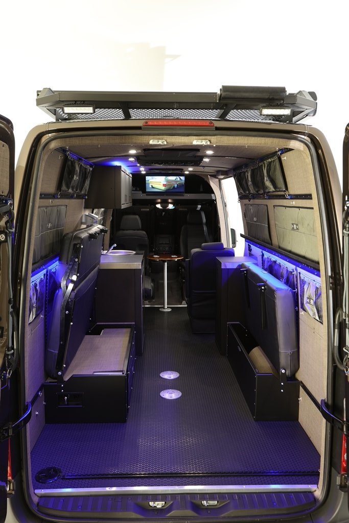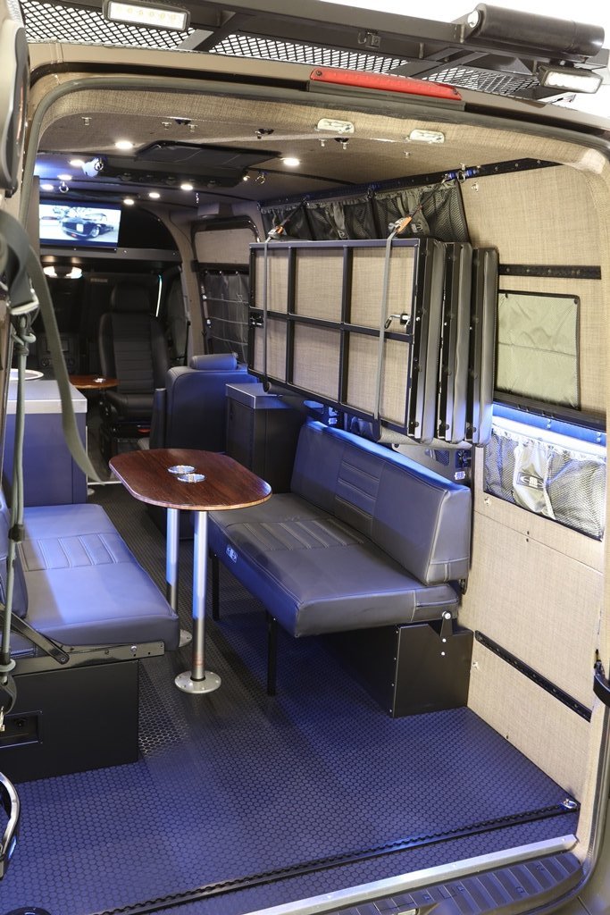 - Under-sofa storage boxes secure to the van floor and wall. Since the load from the furniture is being carried y the box, the wall attachment does not have to be as strong as under typical wall mounted furniture installation.