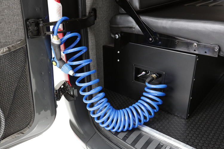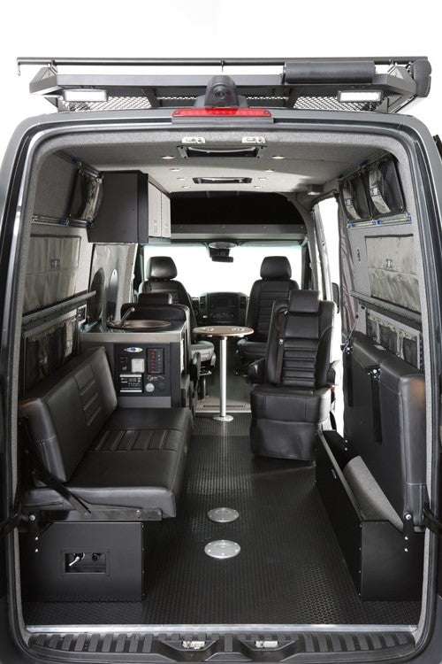- Under-sofa storage boxes secure to the van floor and wall. Since the load from the furniture is being carried y the box, the wall attachment does not have to be as strong as under typical wall mounted furniture installation.