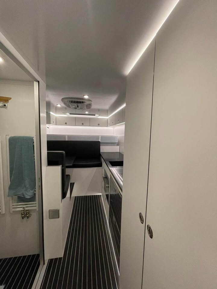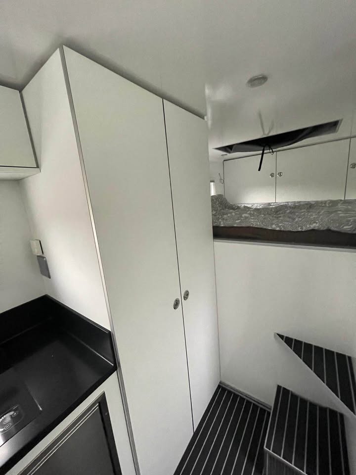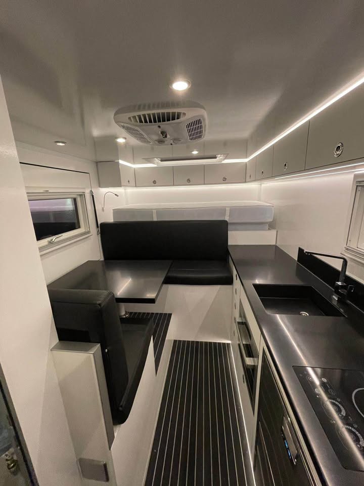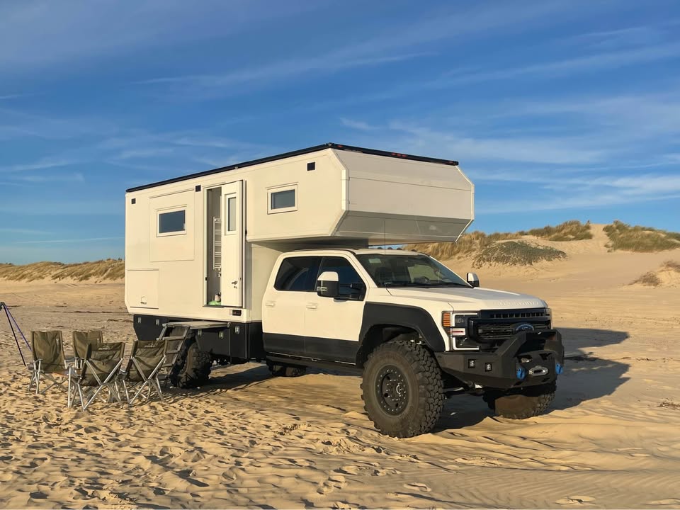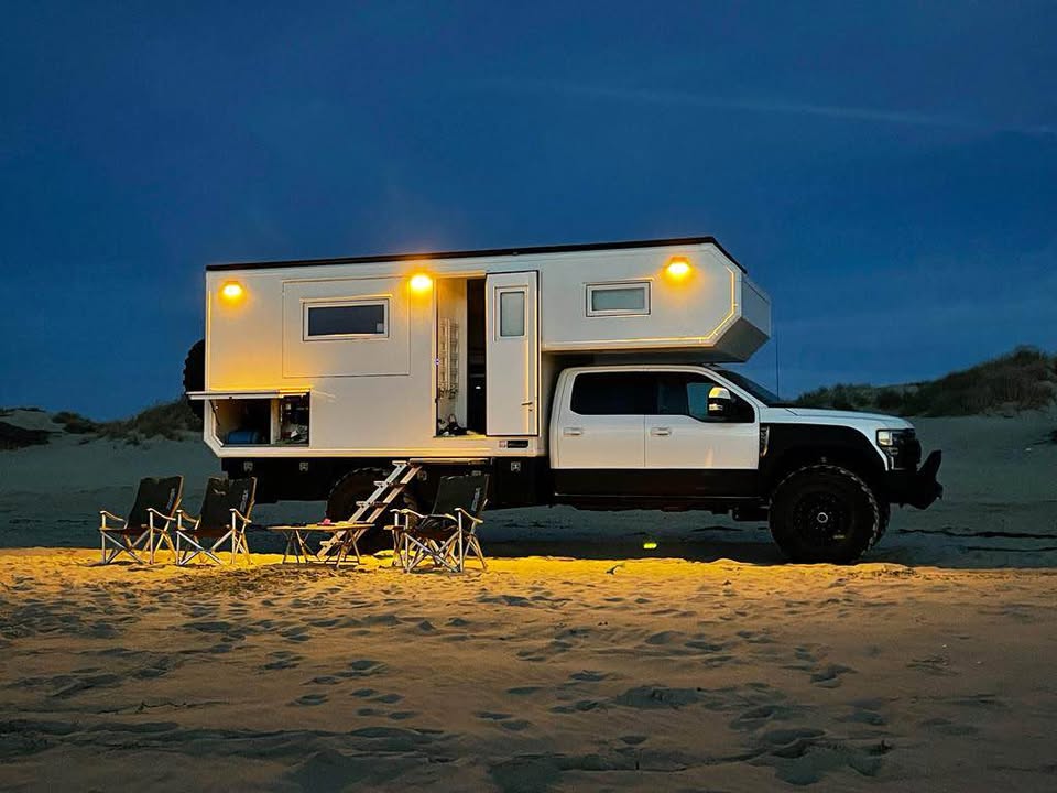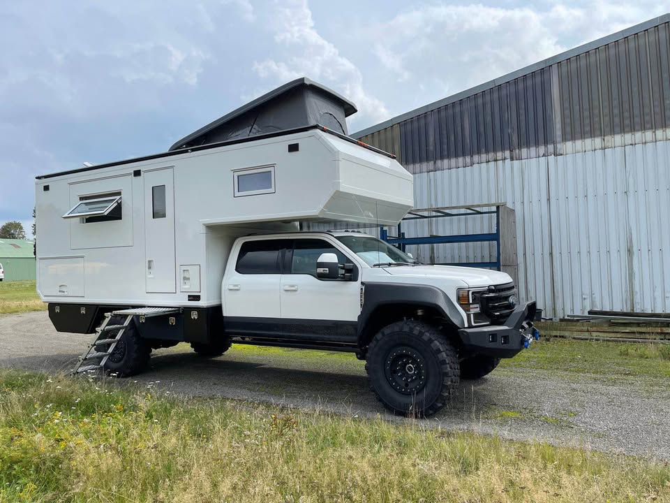 - Sleeps 6–7: oversized cab-over (2), rear sliding bed (2), pop-top (2), dinette conversion (1)