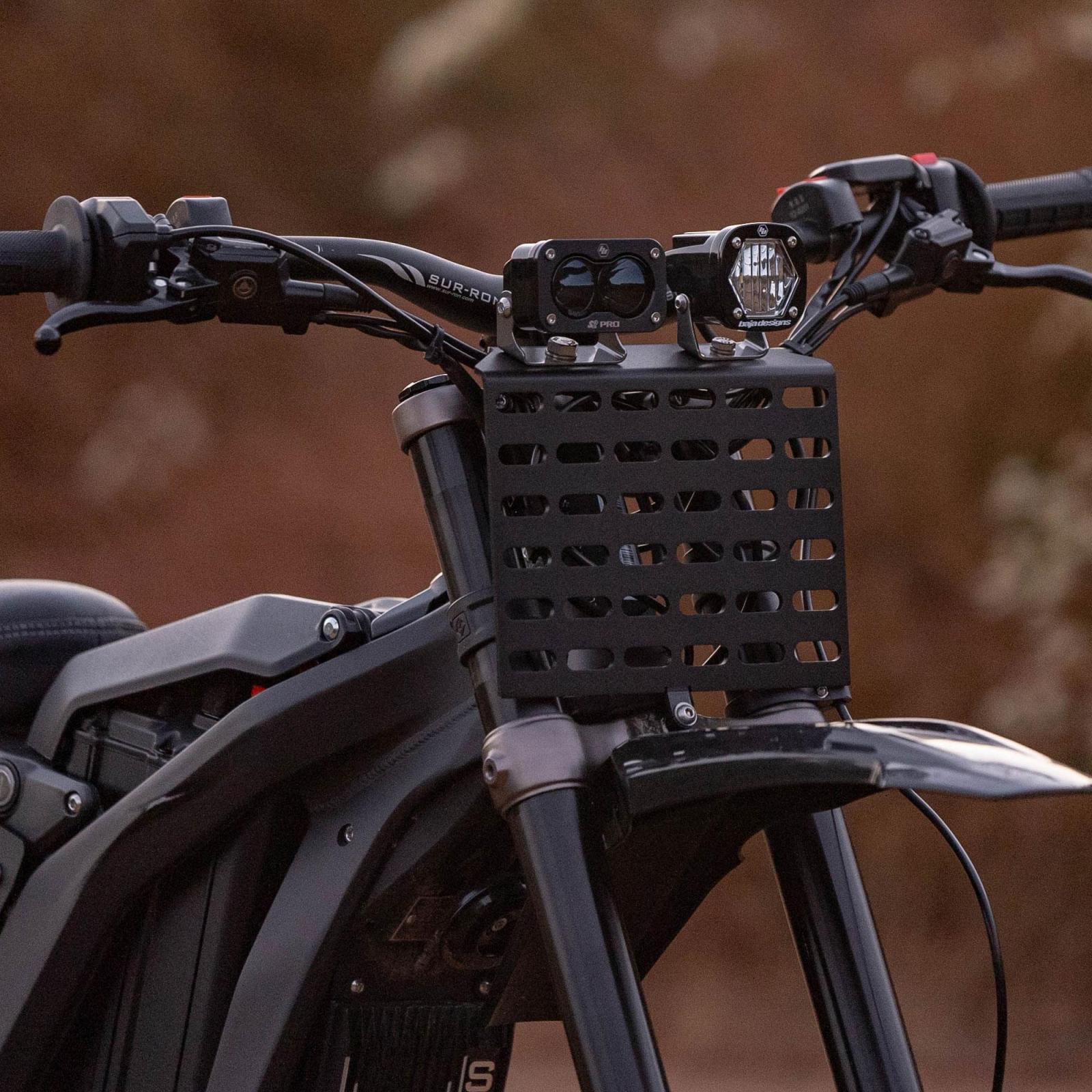 Each light can be operated independently from one another thanks to the included harness. What sets this kit apart from any other Sur-Ron kits on the market is the included Baja Designs molle panels for the front and rear of the bike.