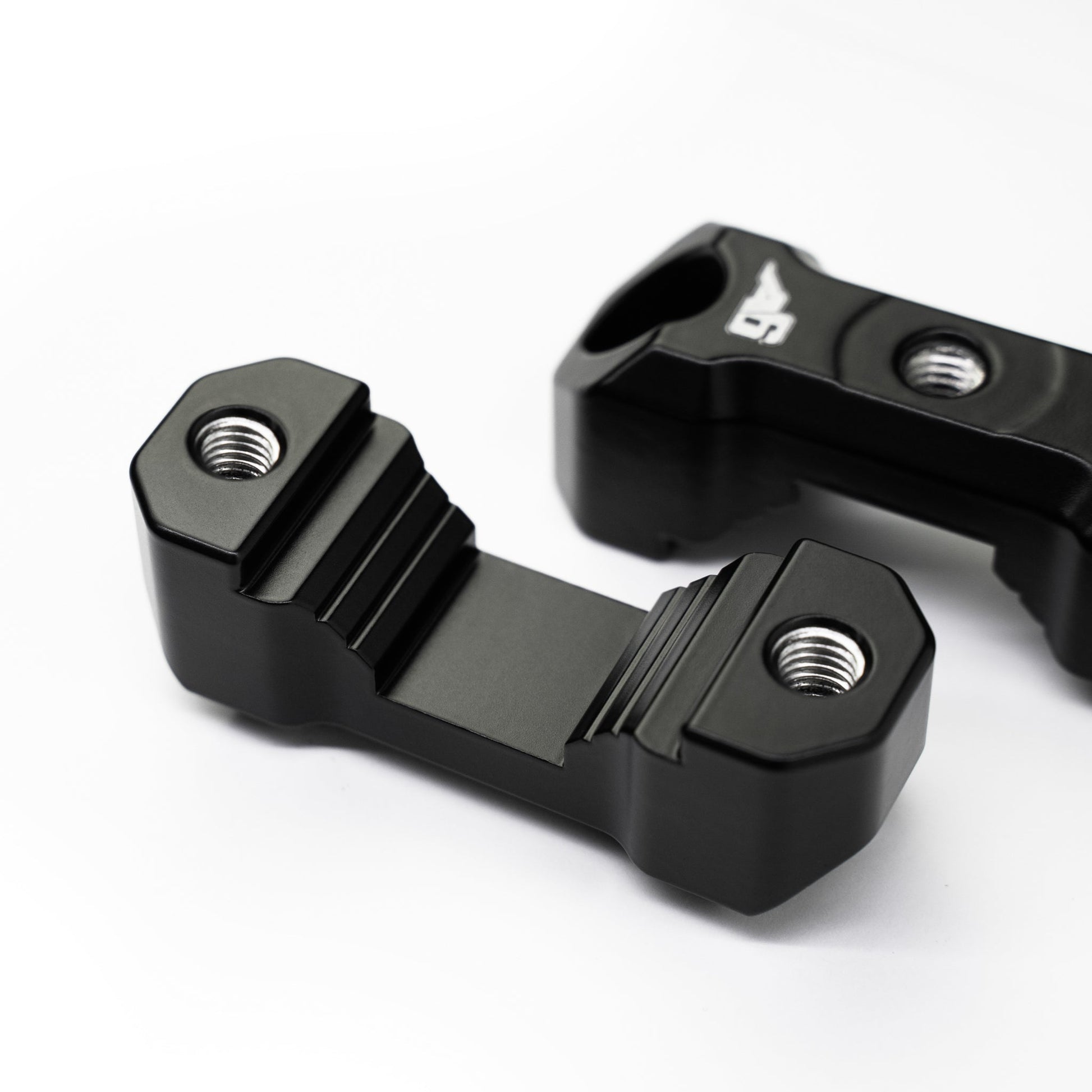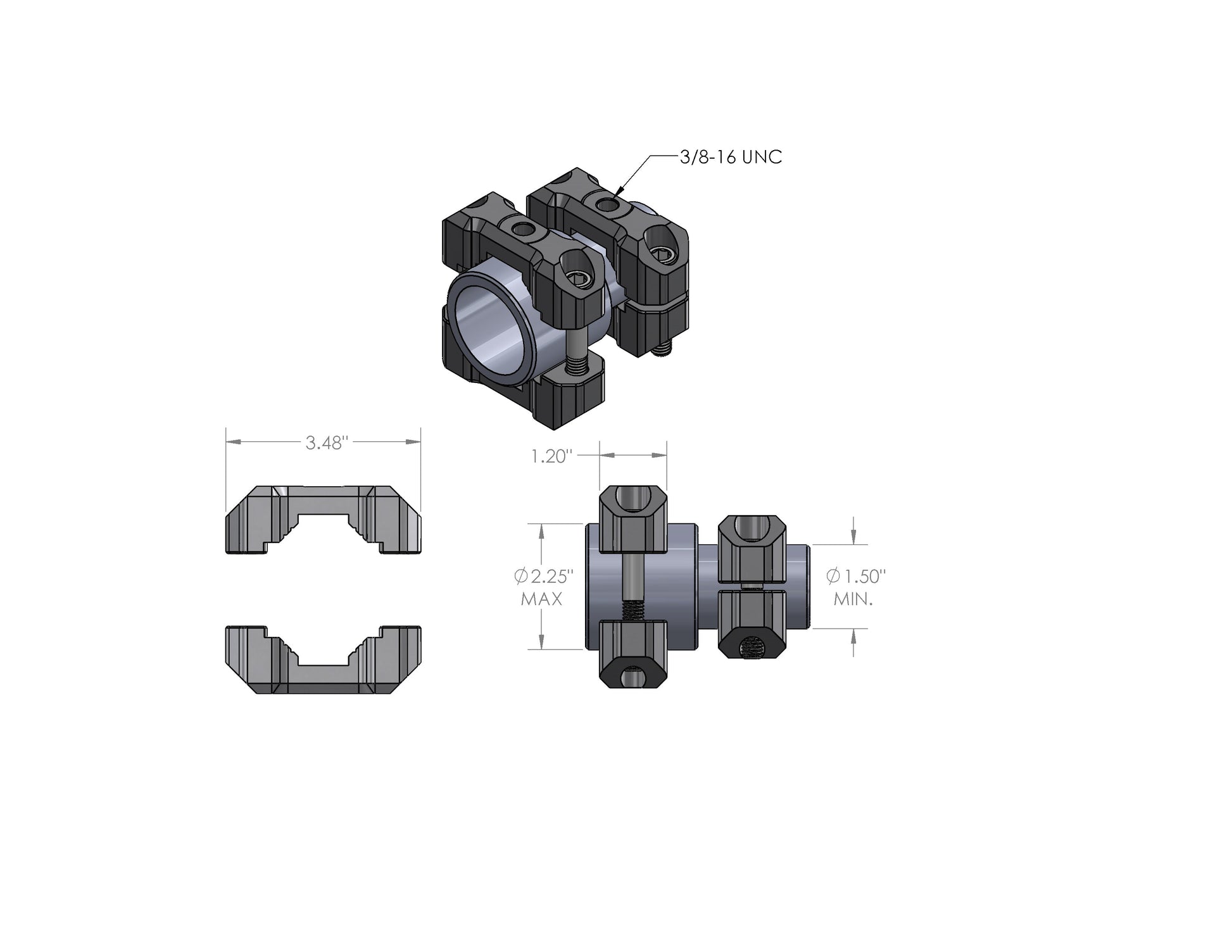 The Universal Mount Device (UMD) is a billet aluminum universal mounting bracket that can mount on multiple applications such as, round tubing, square bar, and flat surfaces. The UMD is designed to mount most off-road equipment in any desired location on flat surfaces, roll bars or other tubing used on the vehicle.